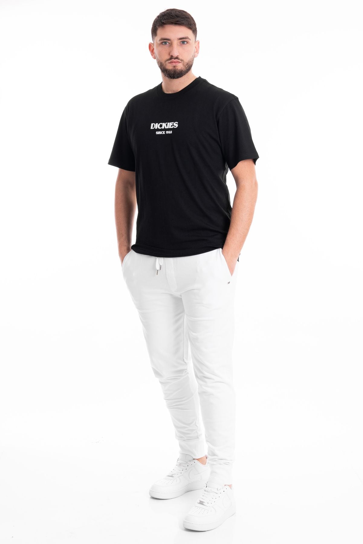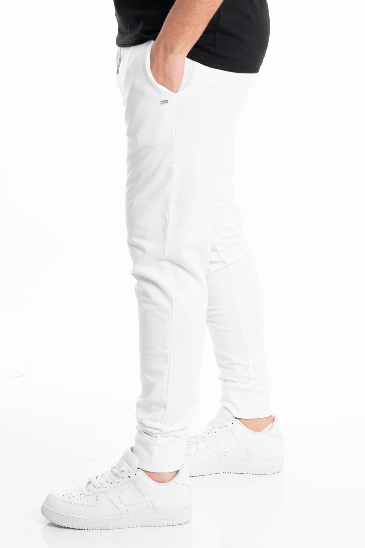 Pantalone sportivo modello tuta in tessuto cotone garzato. Vita con elastico e coulisse per modulare la vestibilità, tasche laterali. Gamba dritta e fondo stretto con elastico. Vestibilità regolare. Composizione tessuto 100% cotone.