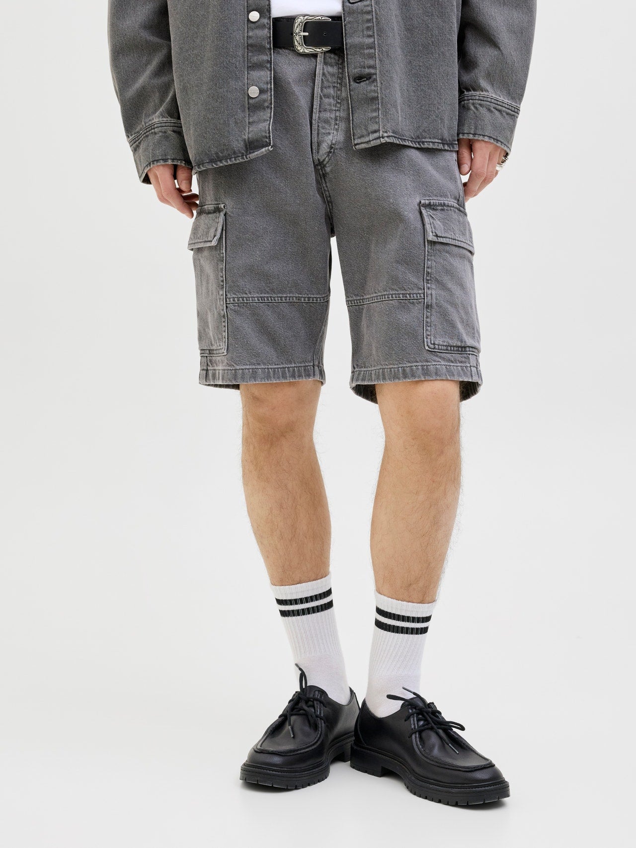 JACK&JONES BERMUDA CARGO ALEX DENIM IN COTONE UOMO (col:gray denim) 12273224 GDM