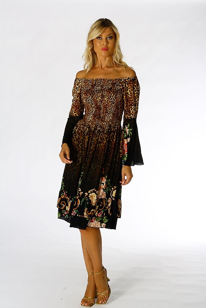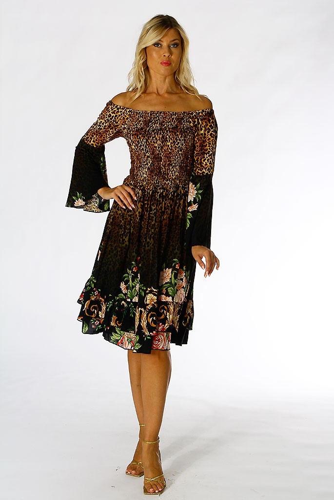 POSITANO BY JEAN PAUL ABITO MINI VISCOSA MANICA LUNGA FANTASIA 32352 LEOPARDO