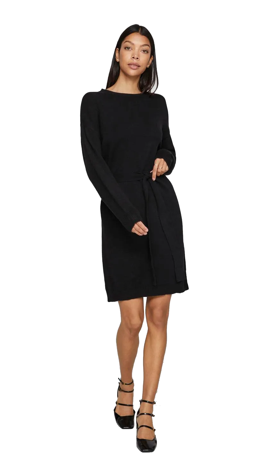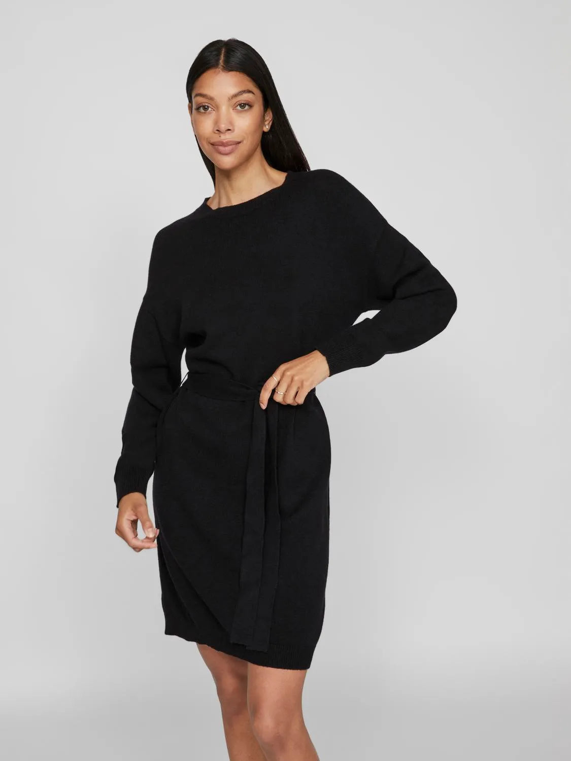 VILA ABITO RIL O NECK MANICA LUNGA CON FUSCIACCA IN VITA DONNA 14094186 BLK