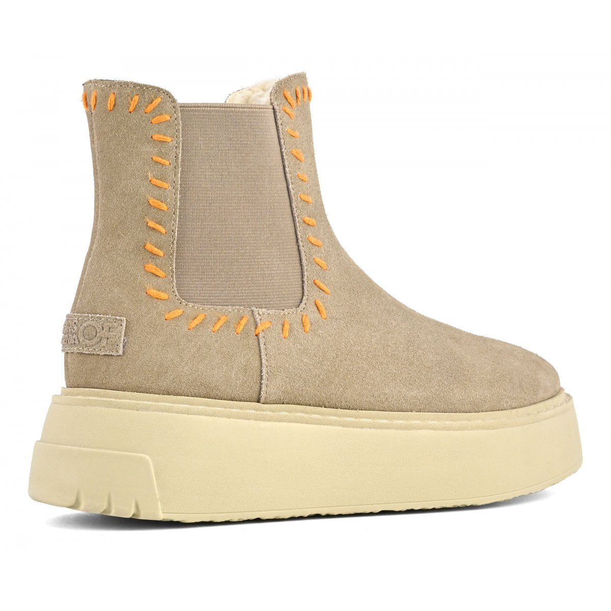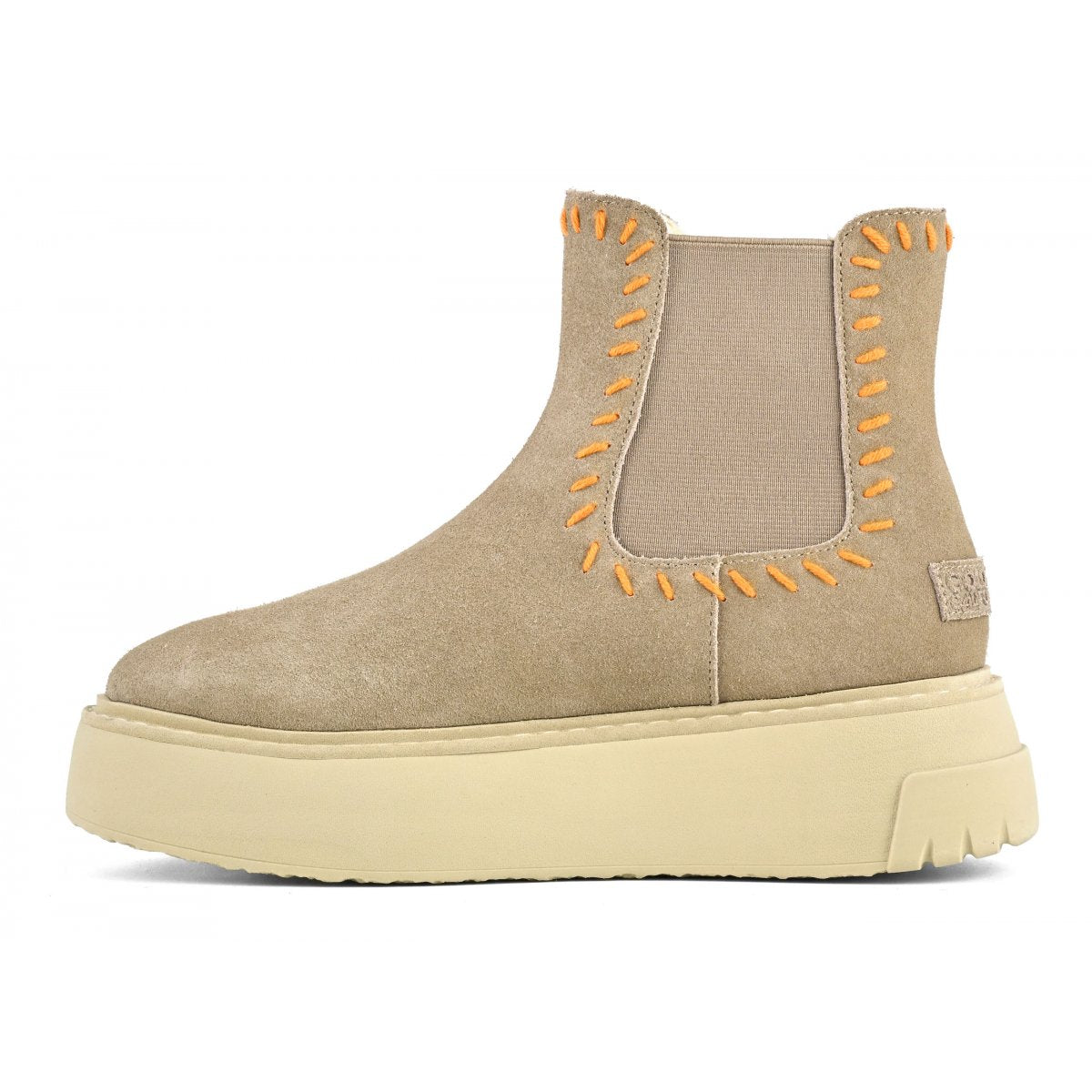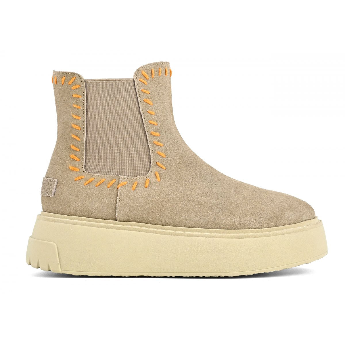 A questi stivaletti dal design semplice e senza fronzoli non manca proprio niente per diventare uno dei must have di stagione. Sono l’evoluzione più nuova degli intramontabili chelsea boots: realizzati in morbido camoscio, hanno il pratico inserto elastico laterale decorato da una bellissima cucitura in lana colorata realizzata a mano. La grande novità è la suola plateau che ricorda una sneaker. Questi bootie sono un mix vincente tra moda e praticità, e renderanno ogni vostro outfit super cool.