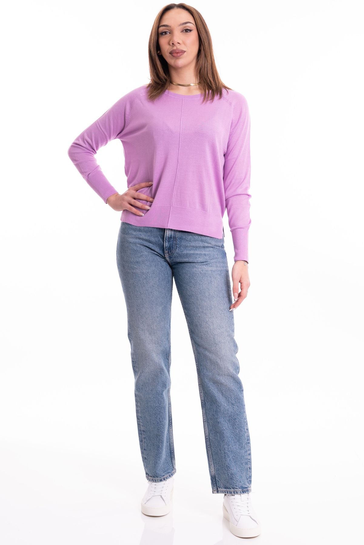 Markup maglia girocollo da donna in misto viscosa, caratterizzata da spacchi laterali sul fondo.