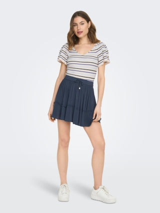 ONLY T-SHIRT LEELO STRIPE SHORT SLEEVE BACK V-NECK DONNA 15283760 TFU