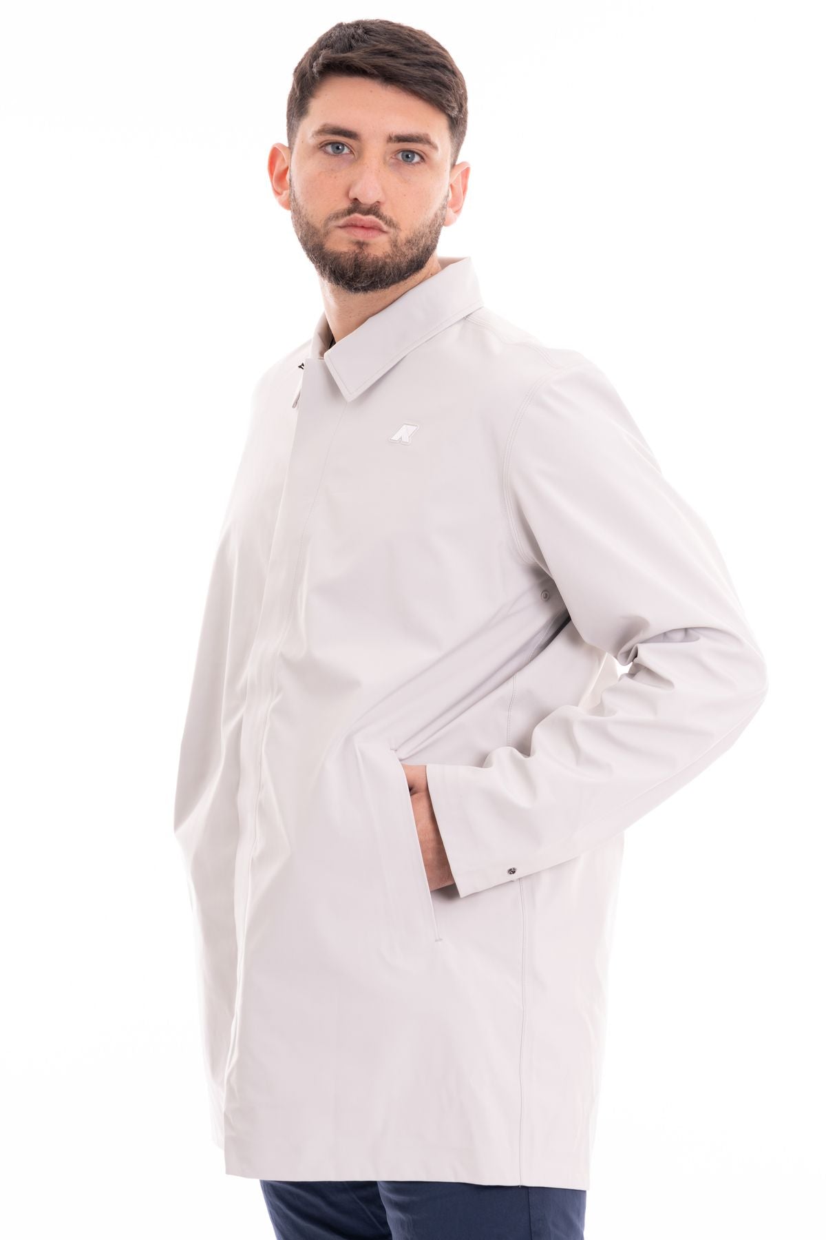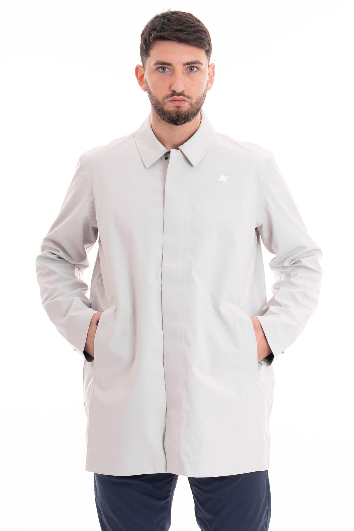 Caratteristiche funzionali, come tasche le tasche laterali e il cappuccio con coulisse elastica, conferiscono un tocco pratico senza sacrificare l'estetica.