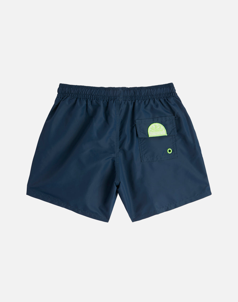 Un modello che accompagnerà il tuo bimbo nelle sue mille attività in vacanza, perfetto per muoversi e giocare in piena libertà. è realizzato nel nostro tessuto storico nylon-taffetà e costruito con cuciture a tre aghi che lo rendono resistente nel tempo. Da mettere in valigia, anno dopo anno.