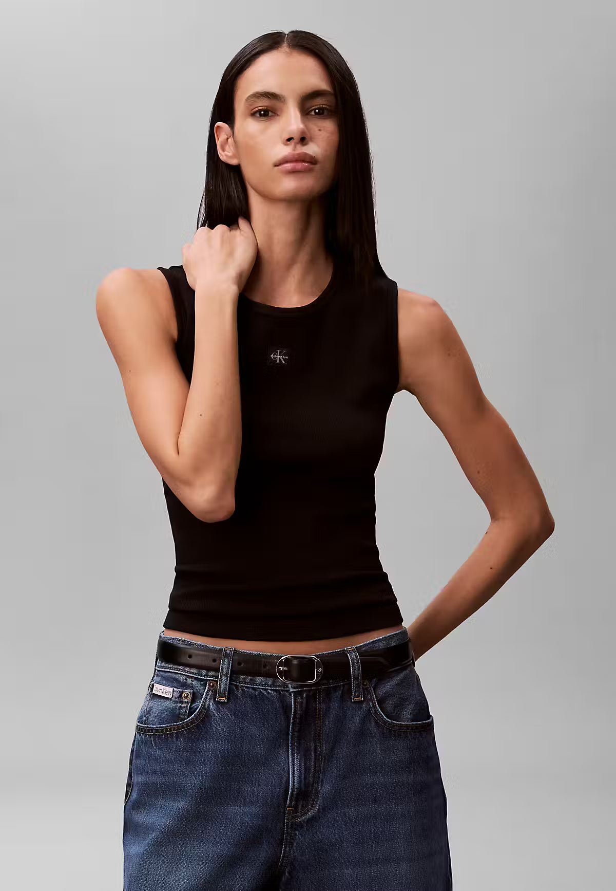 CALVIN KLEIN JEANS CANOTTA WOVEN LABEL A COSTINE CK DONNA LV047F246G UB1