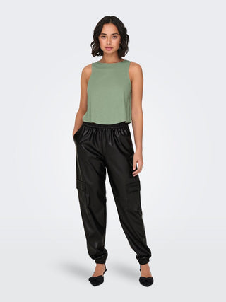 ONLY PANTALONE FADUMA IN PELLE CARGO DONNA 15325118 BLK