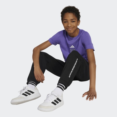 adidas per bambini pantaloni della tuta realizzati in maglia fine elasticizzata. Il modello realizzato in un materiale estremamente confortevole e traspirante perfetto per la stagione calda.