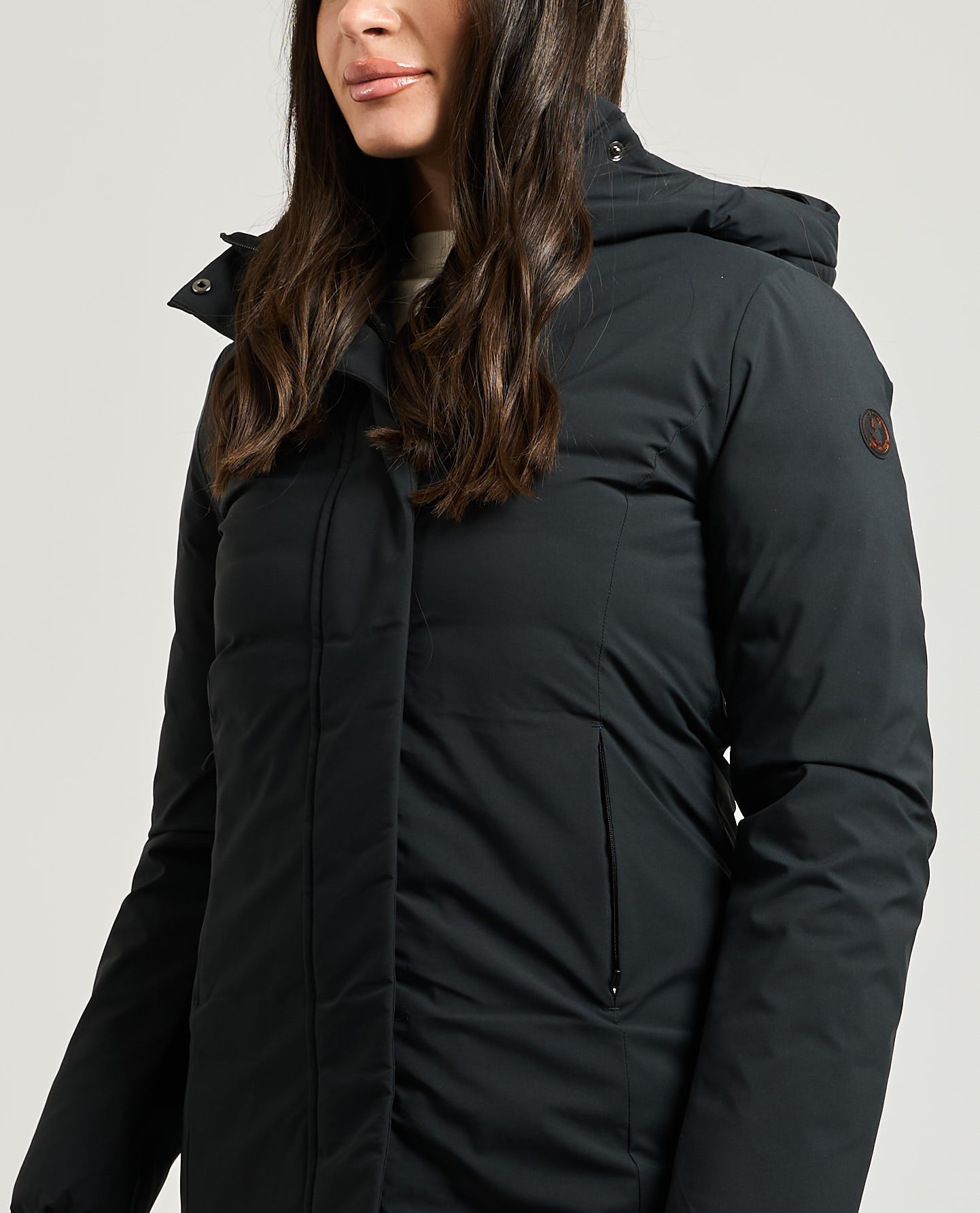 Parka sfiancato in tessuto laminato di nylon stretch con collo alto e cappuccio. I polsini interni in Lycra e le zip water-resistant della chiusura e delle tasche garantiscono protezione extra da pioggia e vento. Il logo tono su tono SAVE THE DUCK a rilievo sulla manica aggiungono un tocco distintivo. Save the Duck utilizza la tecnologia Plumtech, un'ovatta tecnica termoisolante, in grado di ricreare la sofficità della vera piuma, conservando i vantaggi dell'imbottitura termica. Tutela dell'ambiente e degli animali.