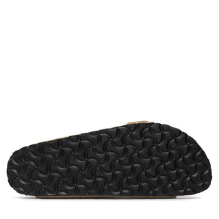 The anatomical cork and latex footbed guarantees long-lasting comfort, while the metal pin buckles make the model adjustable.