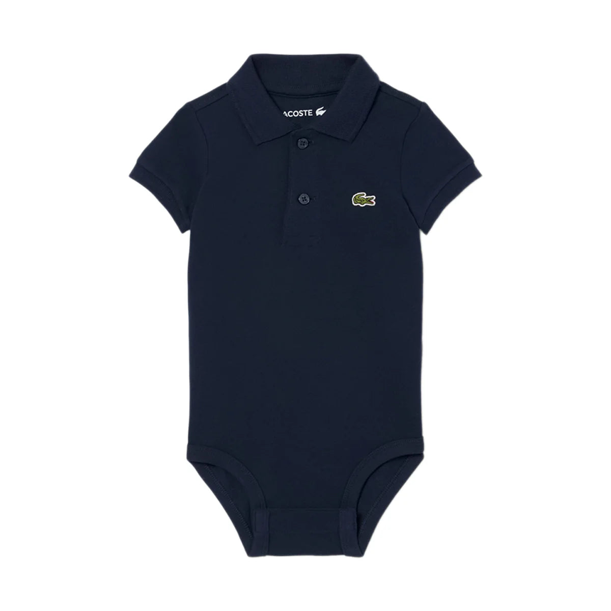 Il design è ispirato alla classica polo Lacoste, con colletto a camicia e chiusura con bottoni sul davanti. Sul petto è presente l’inconfondibile logo con il coccodrillo ricamato, simbolo dello stile sportivo ed elegante del brand. I pratici bottoni a pressione nella parte inferiore permettono un cambio rapido e semplice.