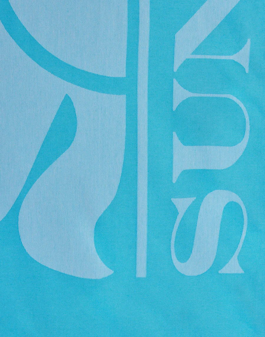 Jacquard fouta beach towel with contrasting maxi logo with vertical stripes and woven fringed bottoms. Length: 100x170 cm. Weight: 320 gr.