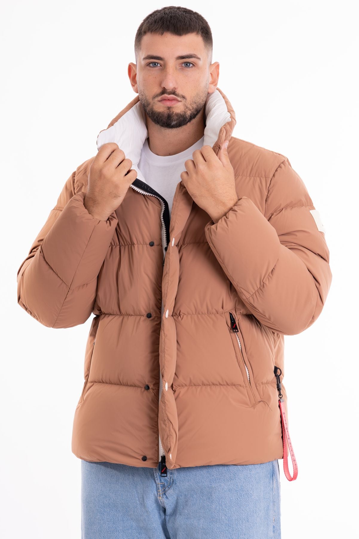 the Chamonix short down jacket comes in a color palette that recalls the lively spirit of the brand. This timeless piece is made from an ultralight version of matte stretch nylon, a material that offers maximum warmth without feeling heavy.