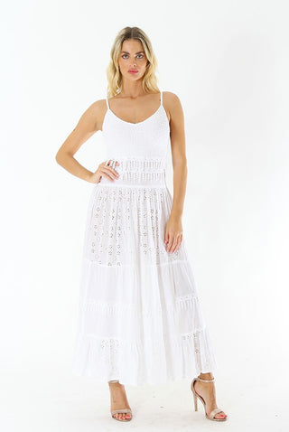 LONG COTTON DRESS WITH FANTASY SHOULDER