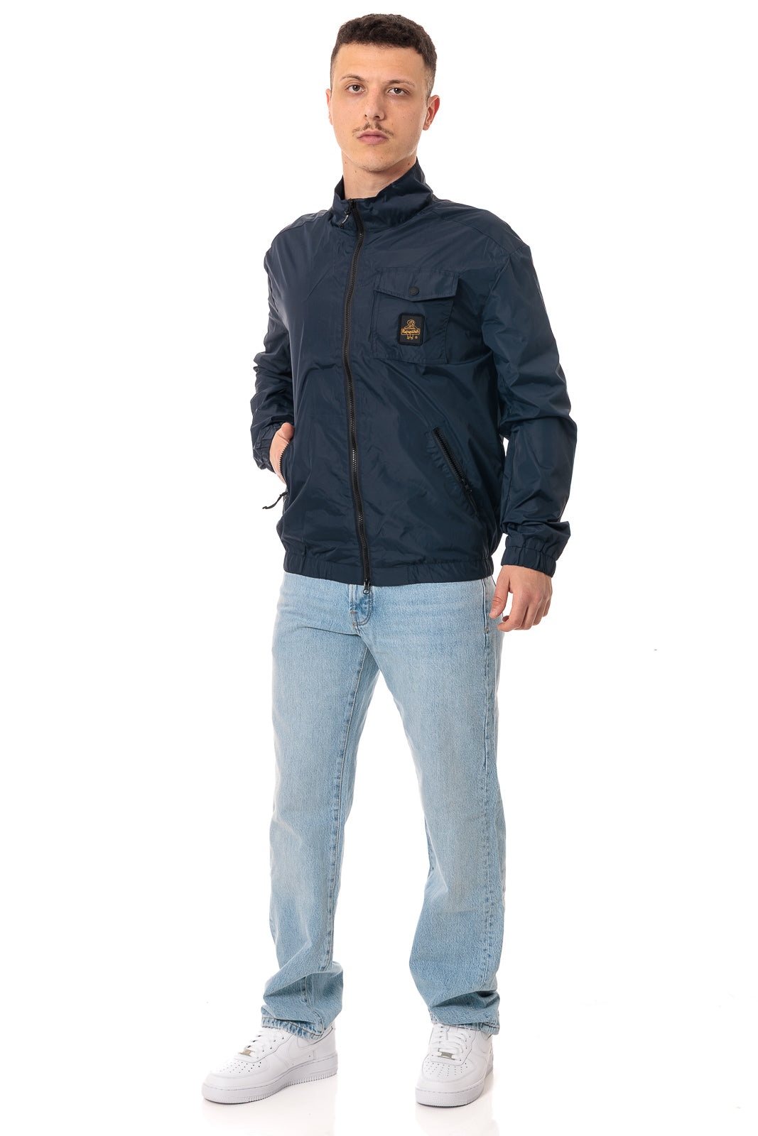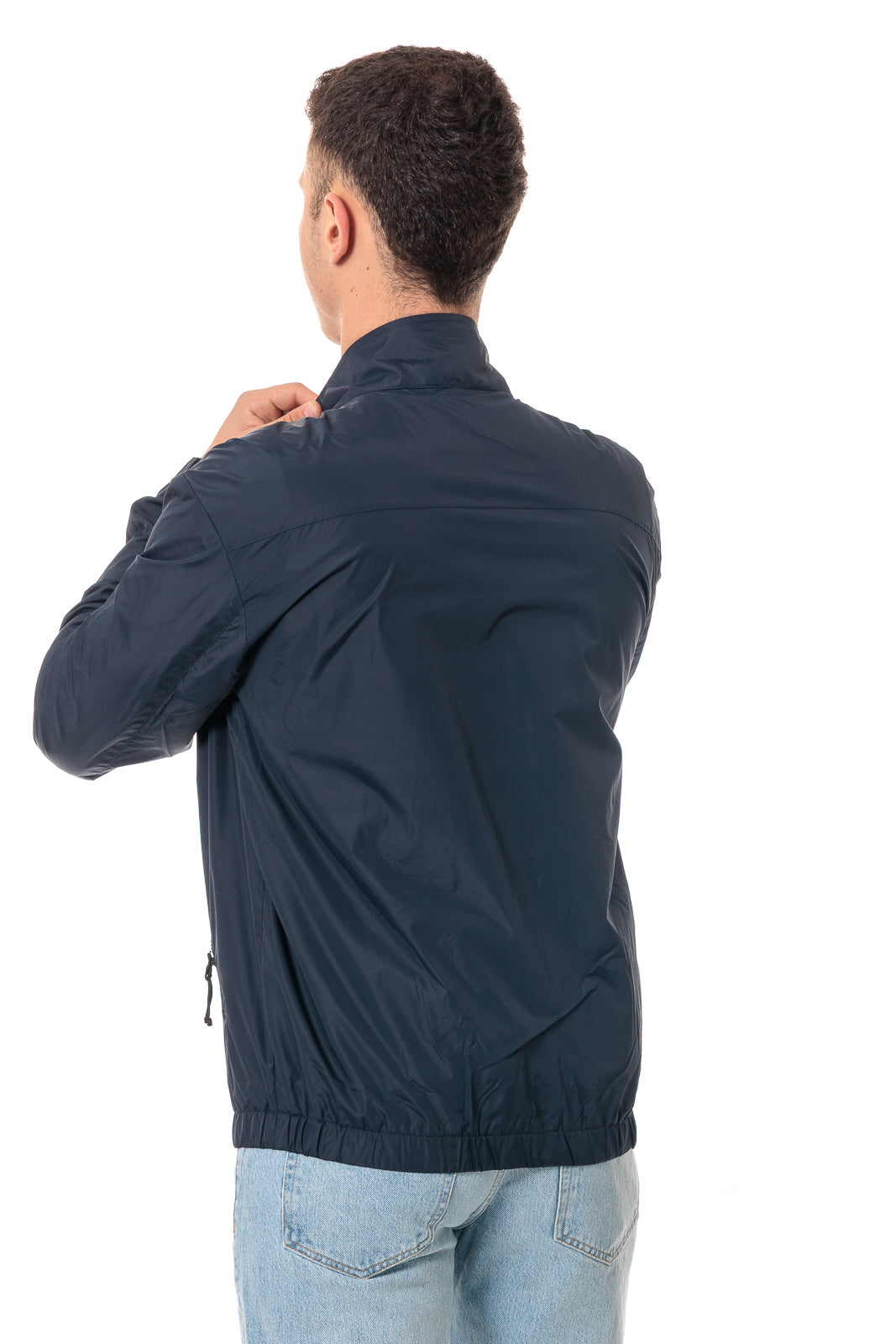 Men's bomber jacket made of opaque nylon, a technical fabric that combines style and functionality. Thanks to a special coating and internal finishing, the garment is ultra-light and compact, offering maximum protection without compromising breathability and comfort.