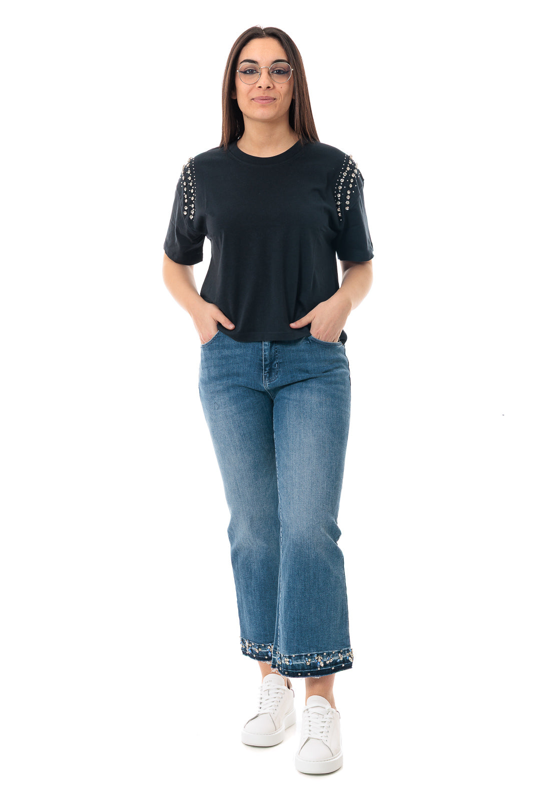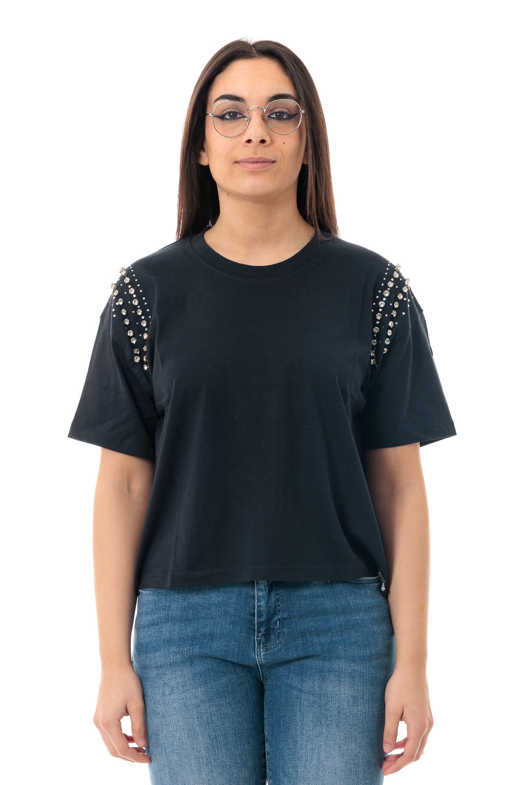 T-SHIRT GIROCOLLO CON DETTAGLIO SULLE SPALLE DONNA