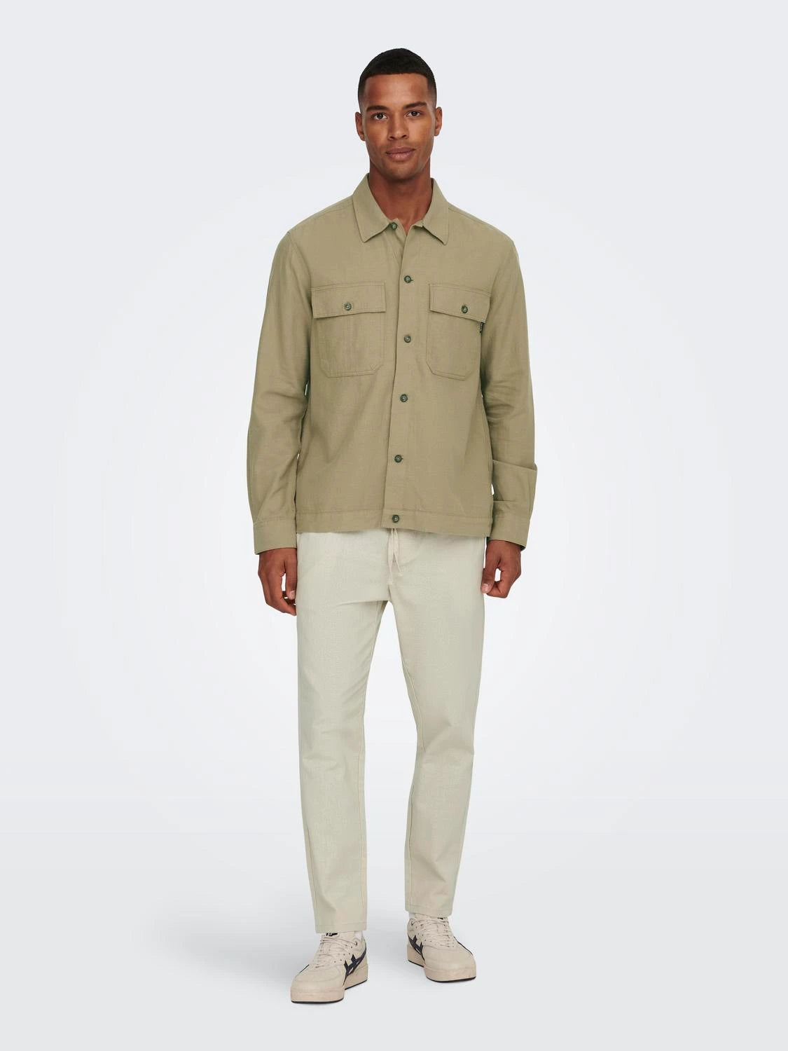 ONLY&SONS LINUS CROP PANTALONI IN LINO CON LACCI UOMO (COL:SILVER LINING 22024966 SVL